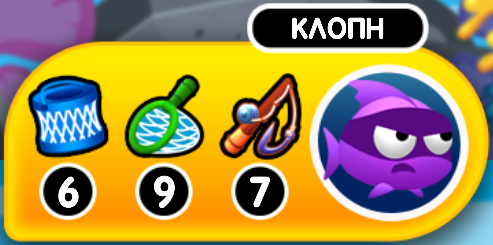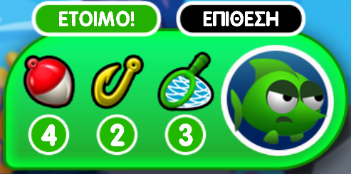 A fishing net appears on top of the whole table and adds every fish on it into your stash.Each weapon requires a certain number of special objects in order to be used. This number appears on a red circle on top of the weapon button if the required objects have not been yet collected.