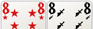 Tichu deck consists of 56 cards and four suits. The suits are Jade, Swords, Pagodas,and Stars,with each suit having 13 cards of increasing values starting from 2 to 10, J, Q, K, and A. There are also four special cards, the Dragon, the Phoenix, the Hound, and the Mah Jong.